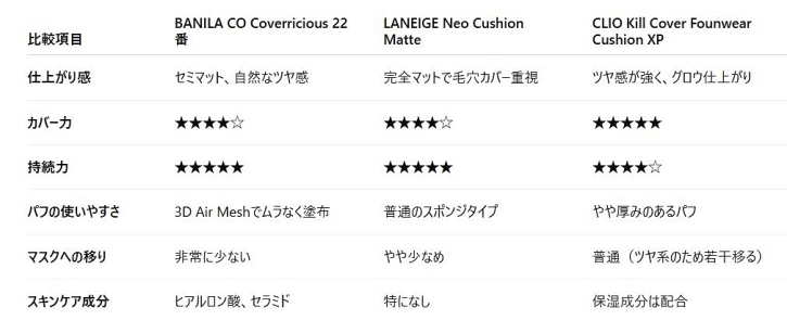 他の人気クッションファンデとの比較