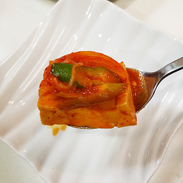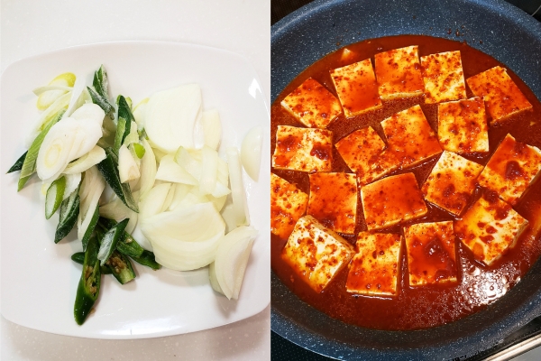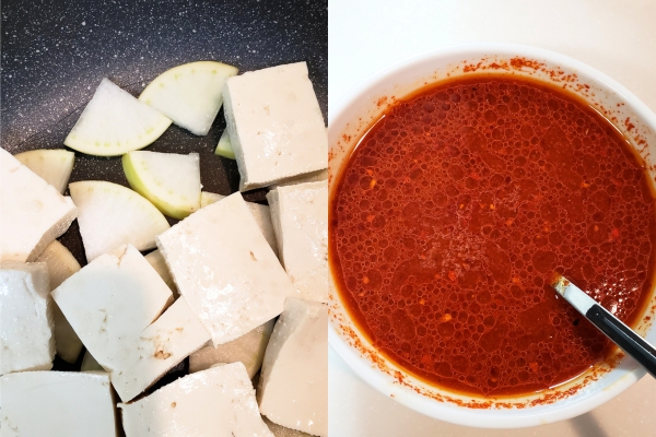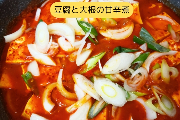 汗かきながら食べる辛い豆腐&大根の甘辛煮です。